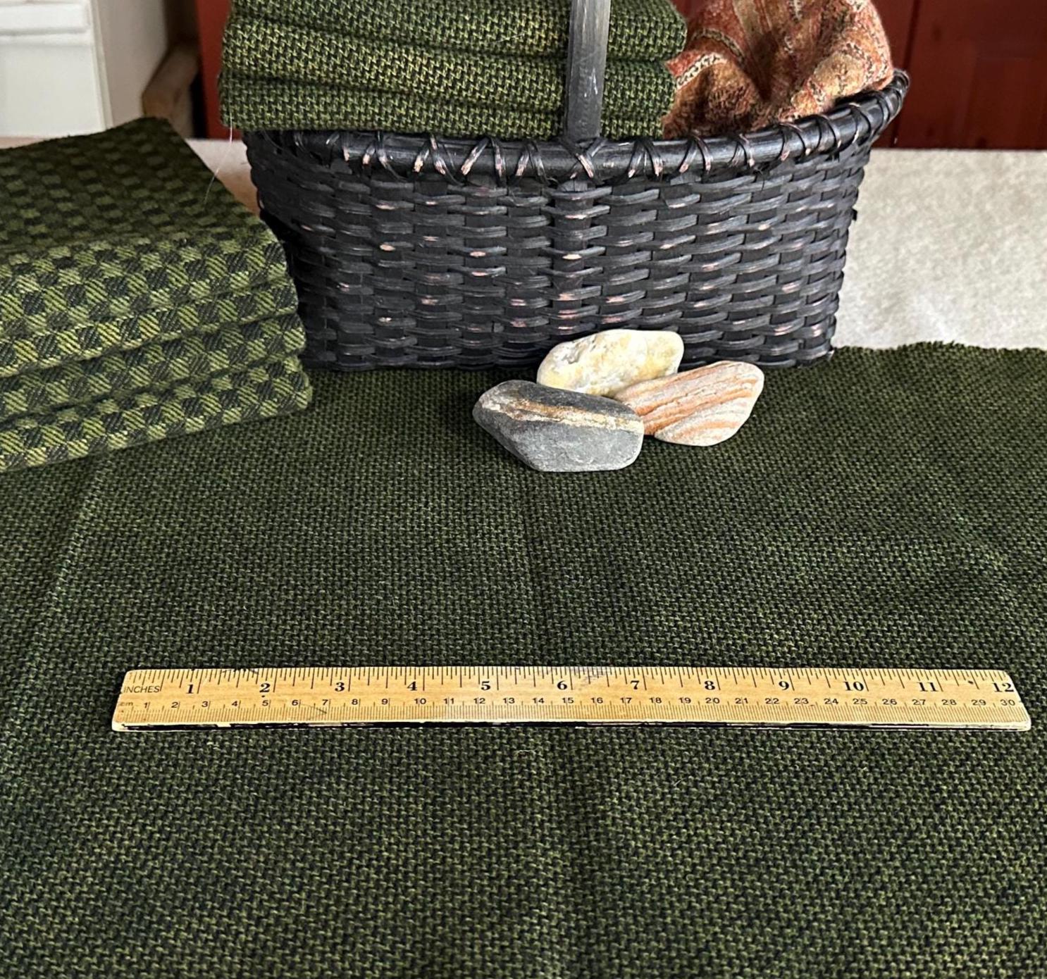 This listing is for one fat quarter of hand-dyed wool fabric in a rich, very dark pine-green shade. Each fat quarter measures approximately 16" x 28", and the wool is a medium weight—perfect for adding depth and texture to your projects.
