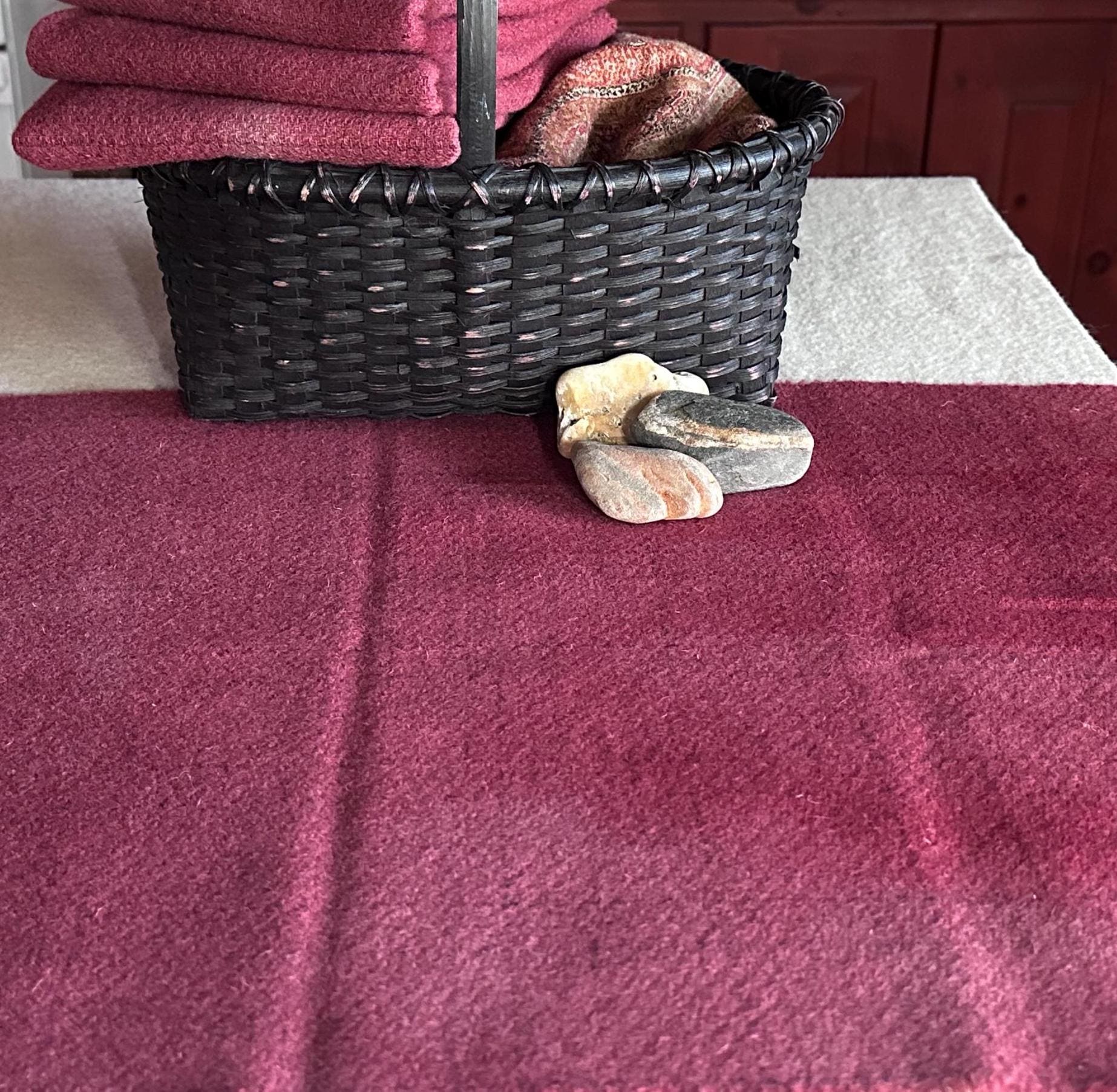 This listing is for one fat quarter yard of felted wool fabric. It has been hand dyed using one of my original dye recipes. It is a beautiful, medium rose texture with a delicate charcoal windowpane. The size is approximately 16" x 28" and it is a medium weight.