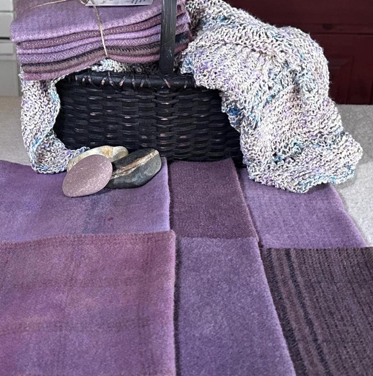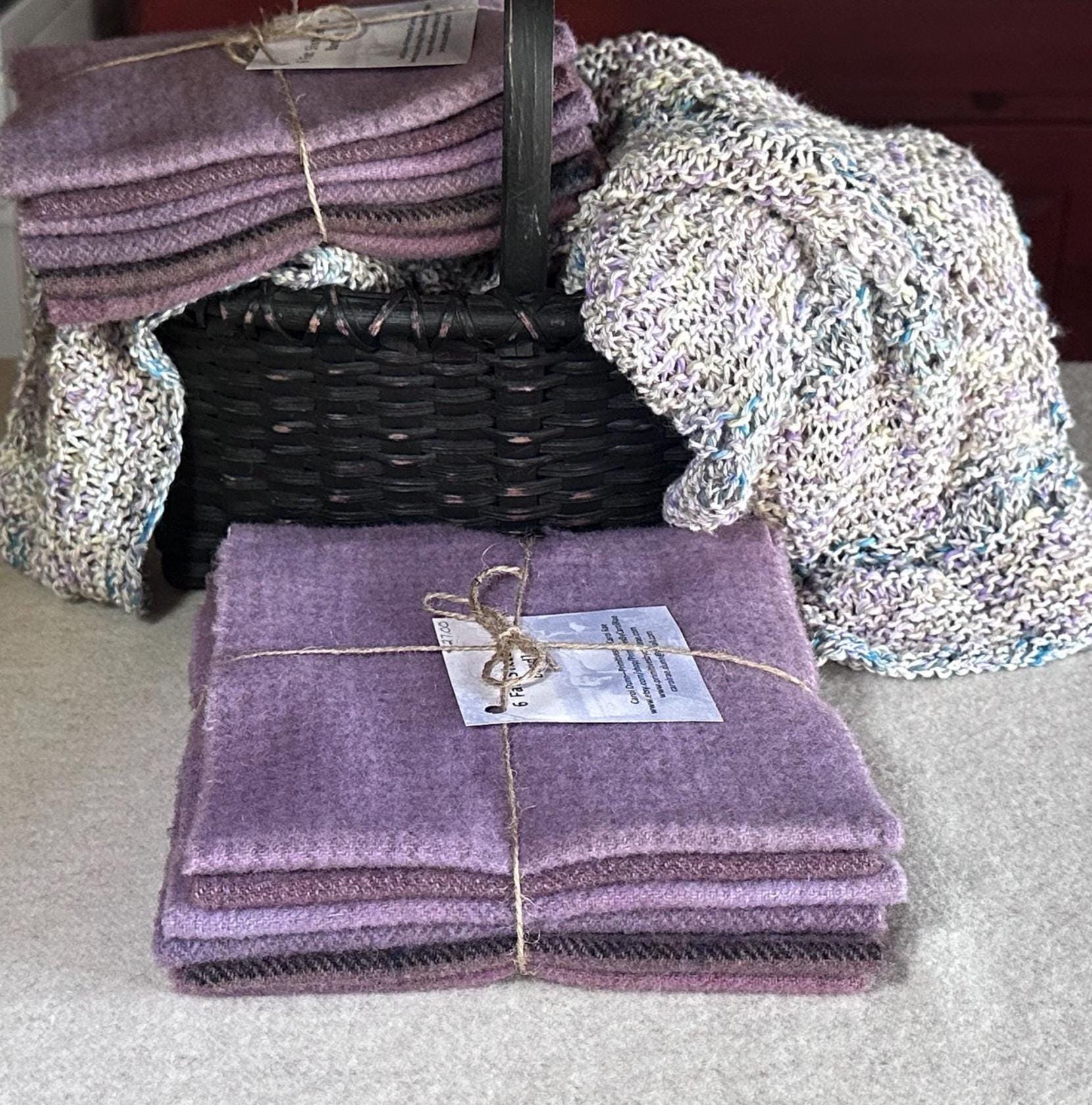 This listing is for five 1/16 yard pieces of 100% wool fabric. They are hand-dyed colors that I call Dusty Violet Mix. The size of each is approximately 16" x 7", depending on shrinkage during the fulling process. The wool is a medium weight. This wool bundle has 5 interesting plaids and textures ready to add character to any project.