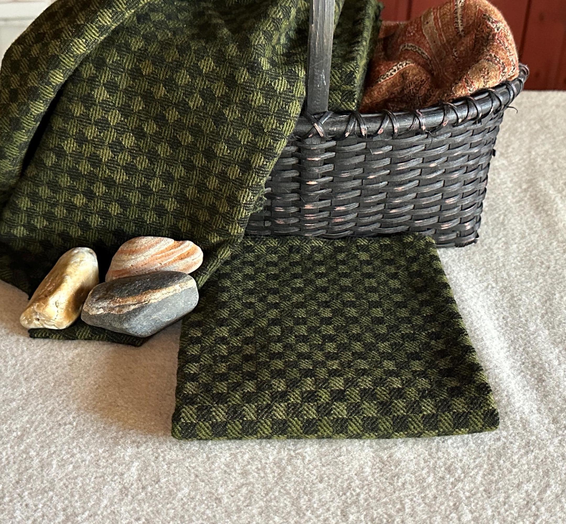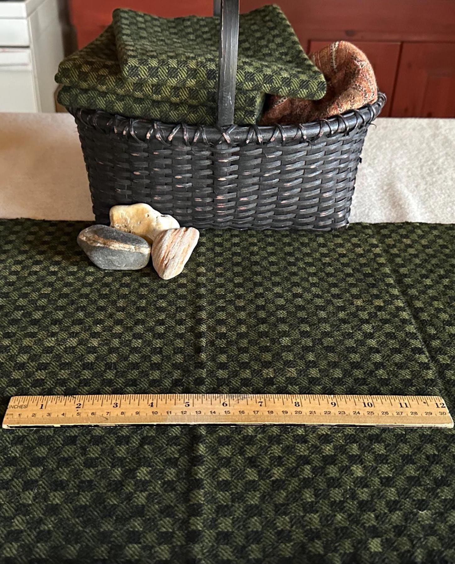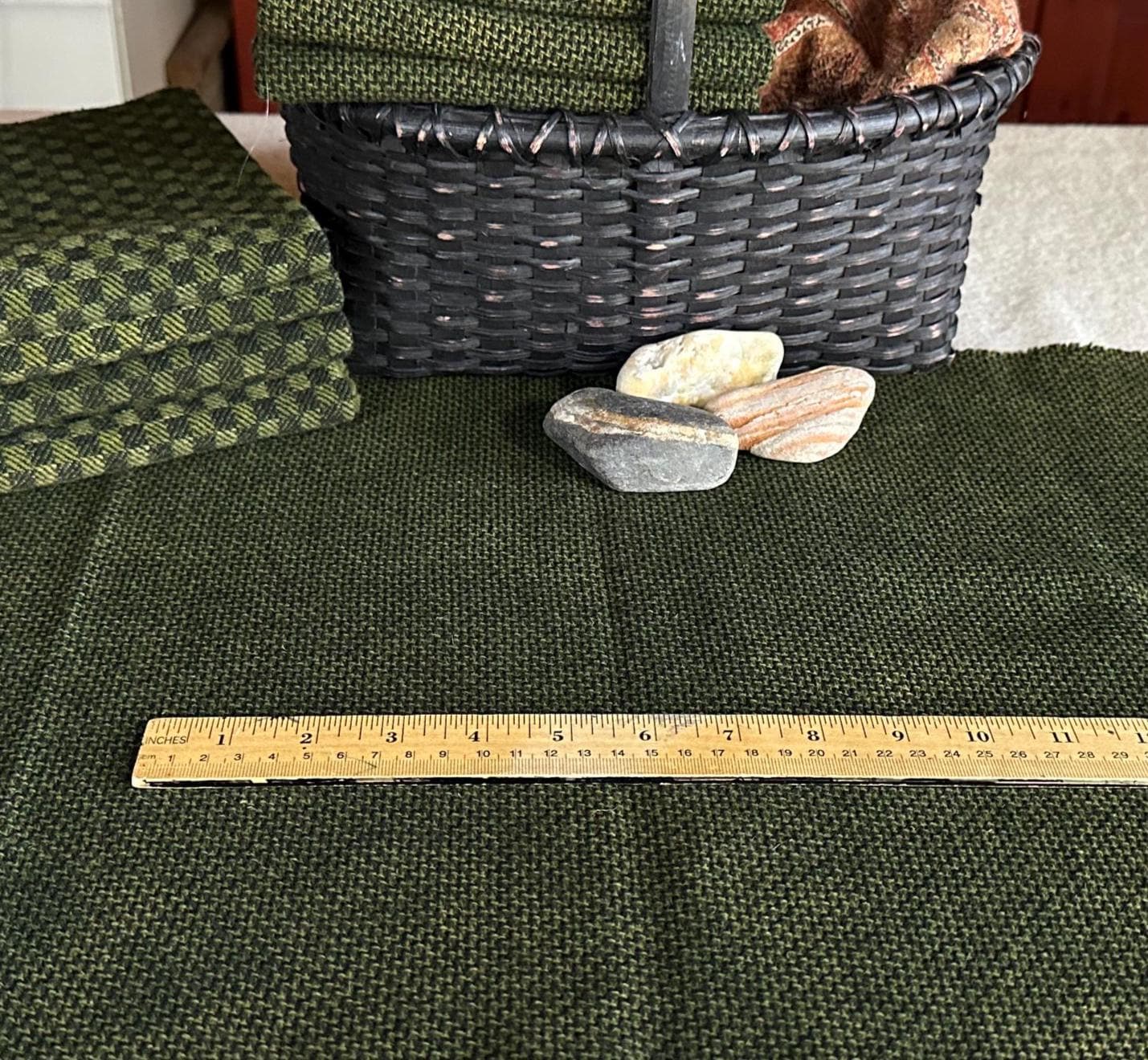 This listing is for one fat quarter of hand-dyed wool fabric in a rich, very dark pine-green shade. Each fat quarter measures approximately 16" x 28", and the wool is a medium weight—perfect for adding depth and texture to your projects.