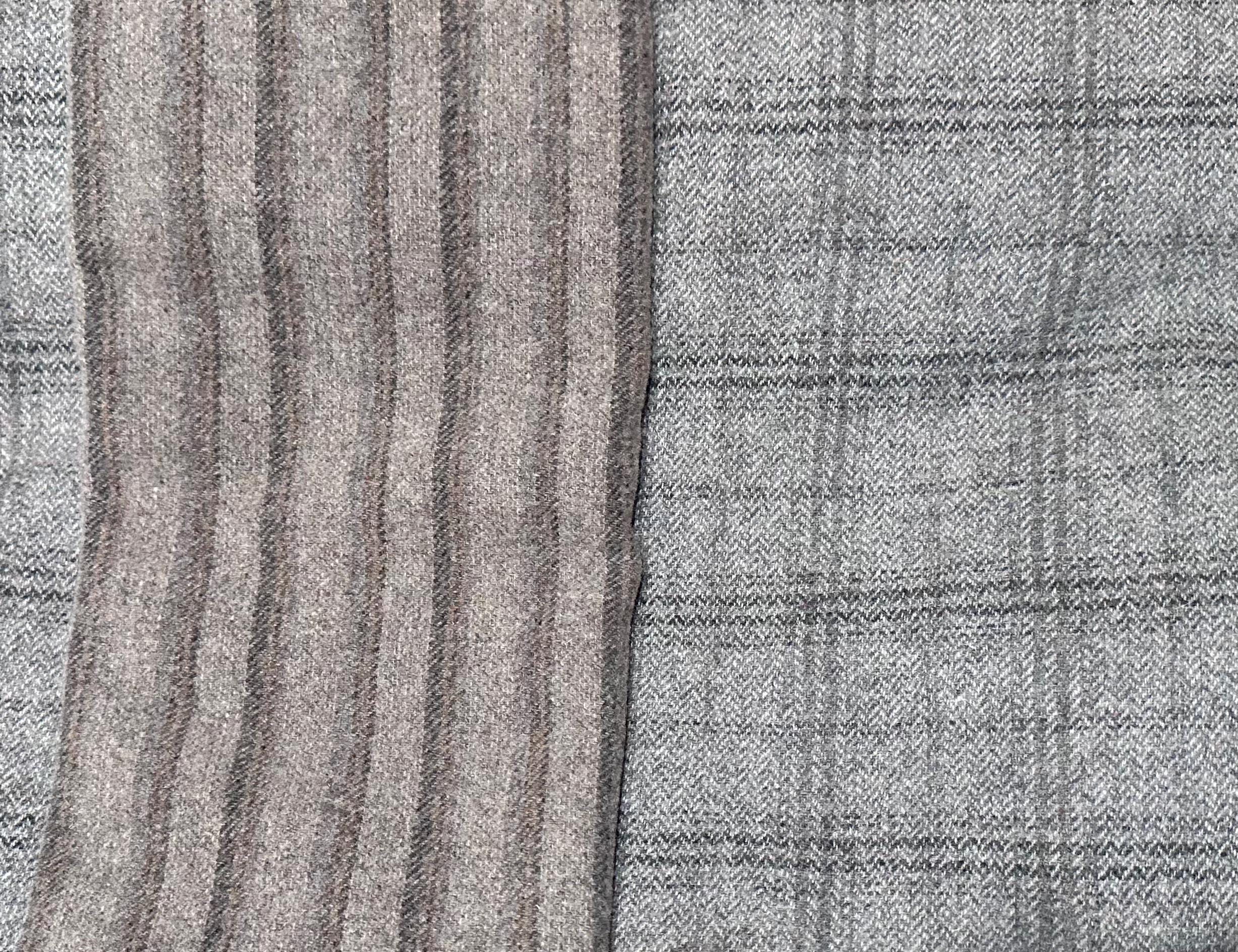 For comparison of hues of gray, the second photo shows it with London Fog, a gray with brown hues. (London Fog is not available for sale.)