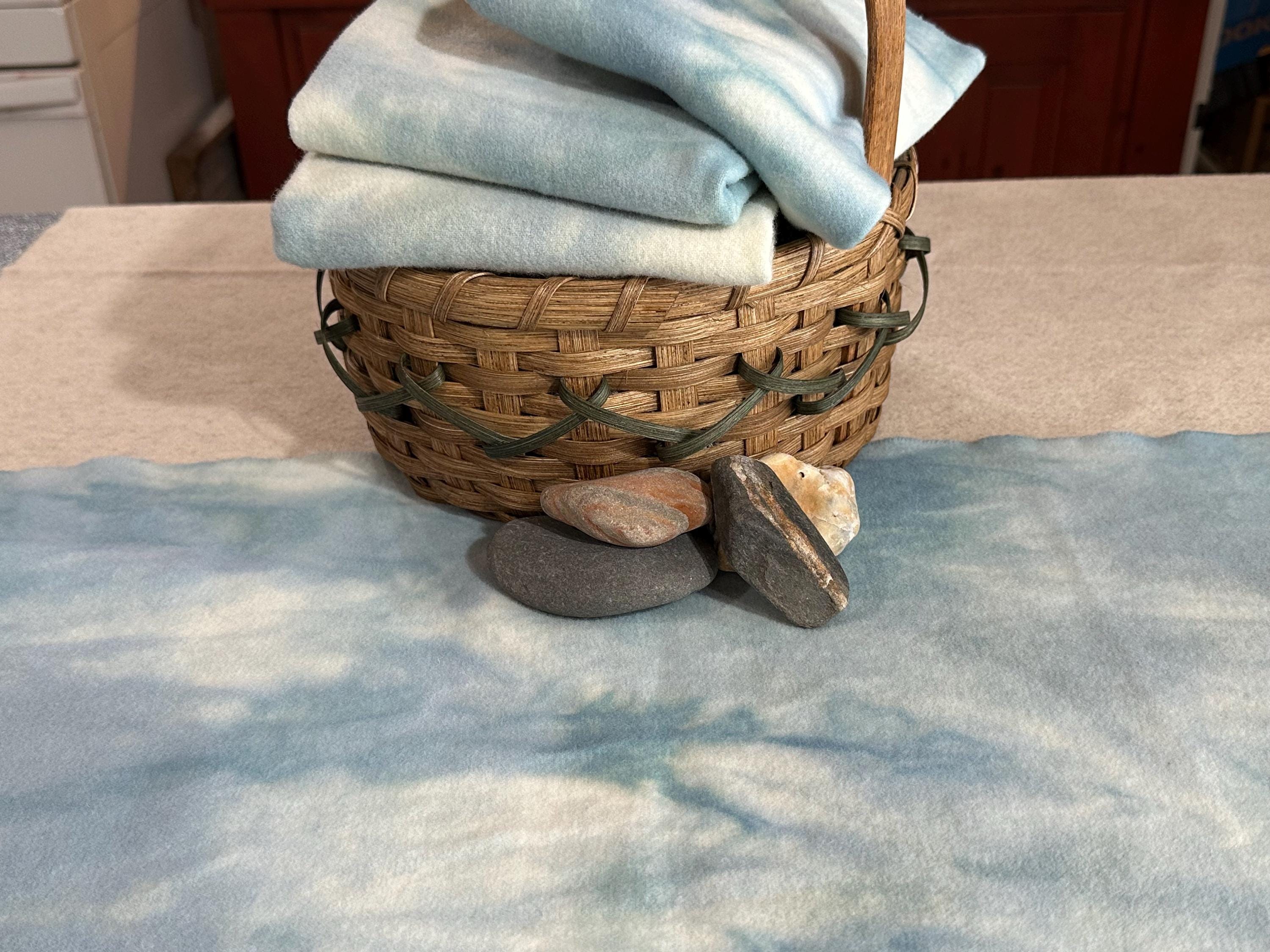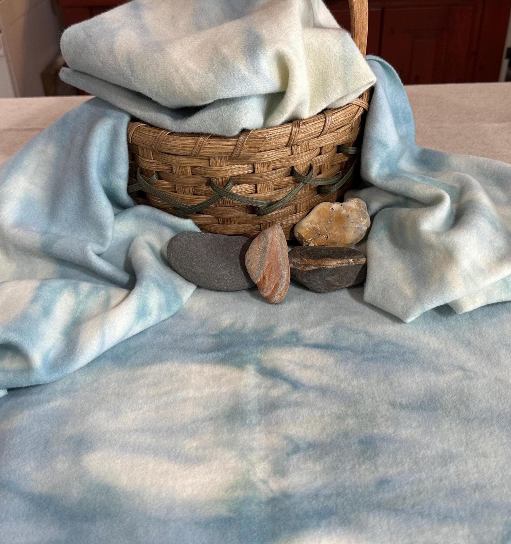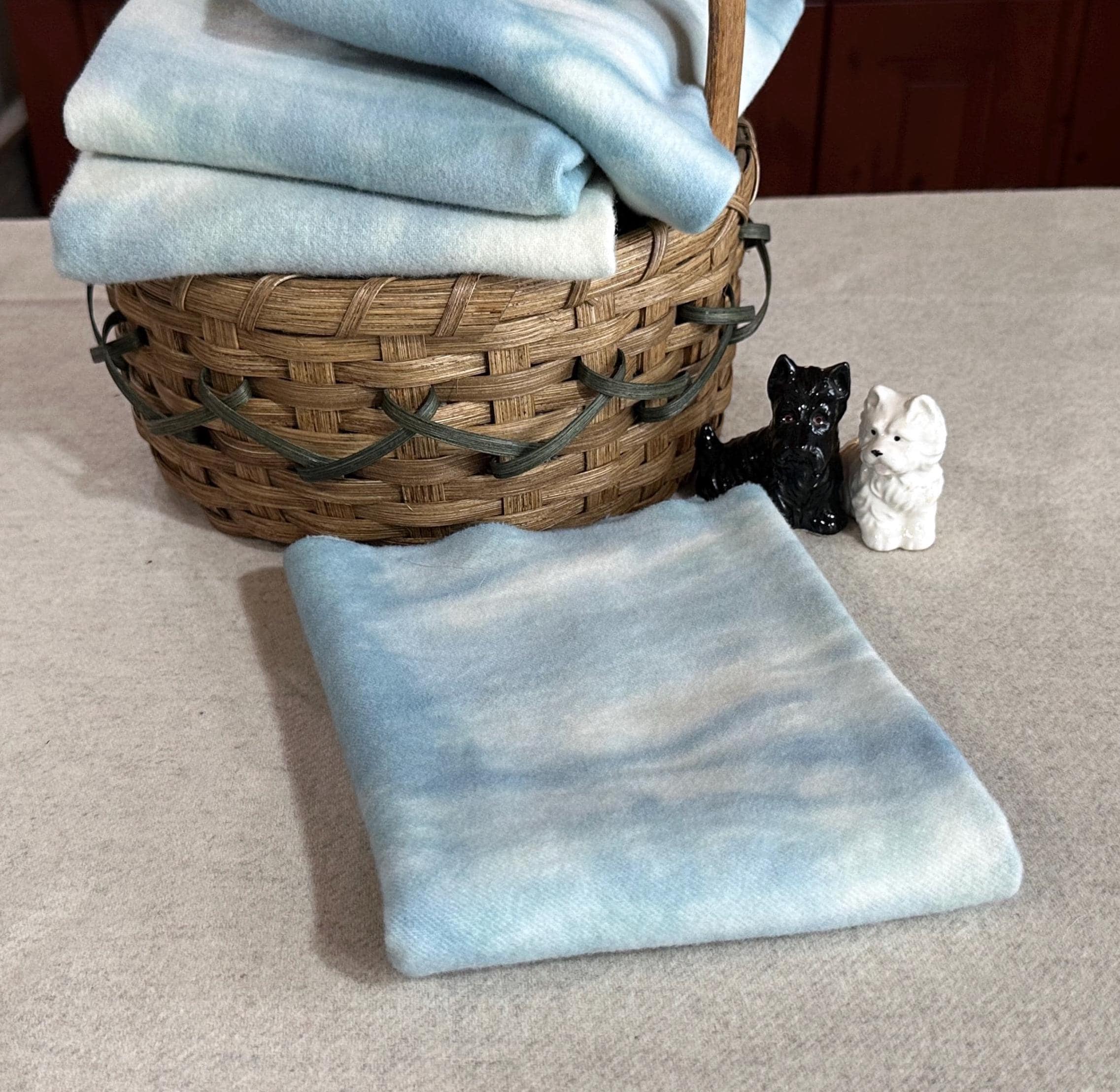 I call this listing "Endless Sky Blue". This wool is a light and medium varigated blue texture. Each piece of wool carries it's own individual shading of light and dark muted color.