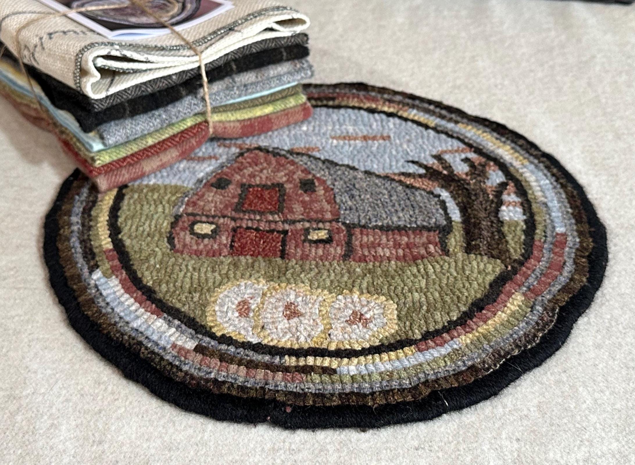 This listing is for the Rug Hooking Kit to hook my design "Old Barn #2". This wool kit has 100% wool fabrics that have been felted and/or hand dyed and are ready to cut.